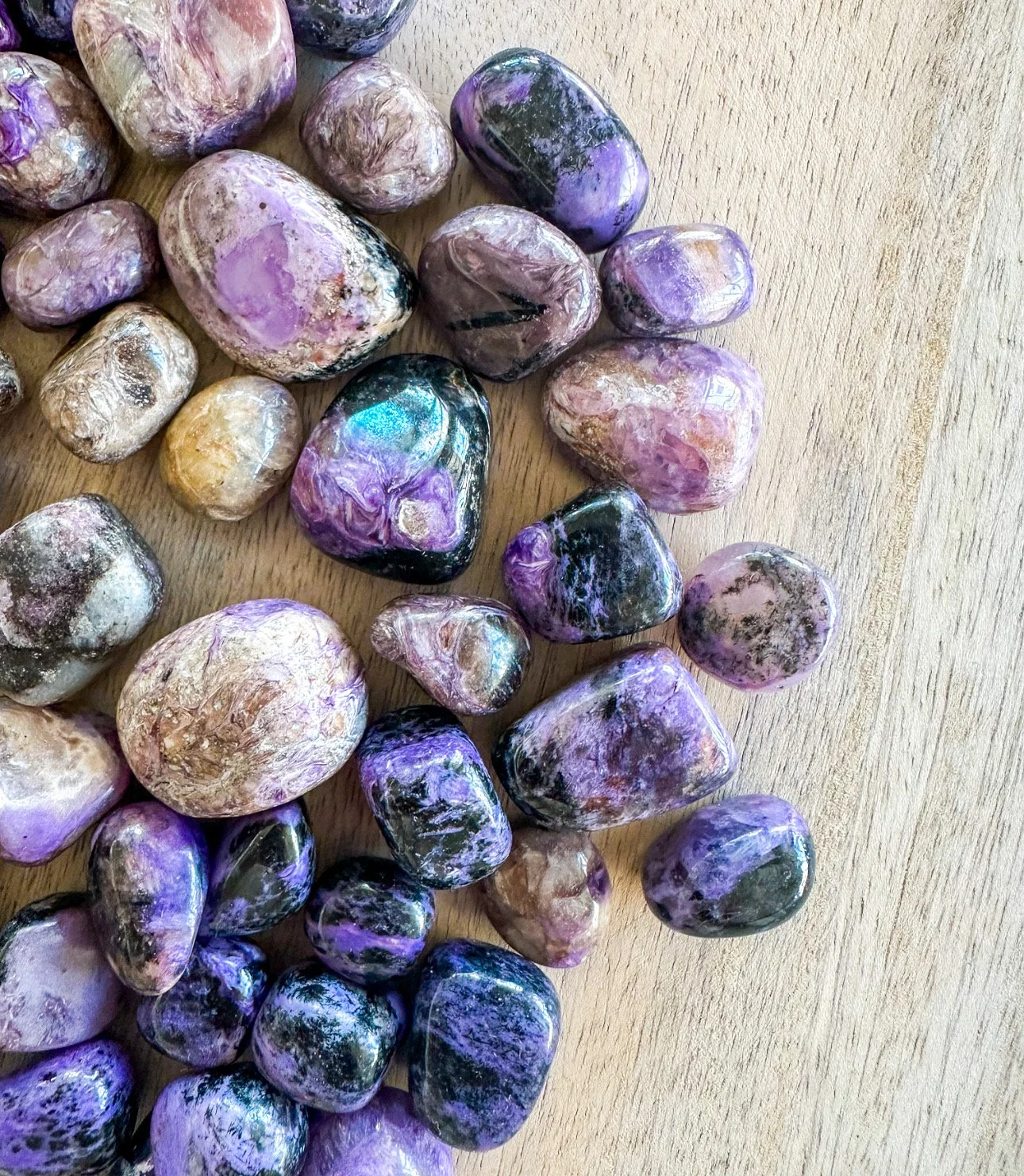 Found almost exclusively in Siberia, Russia, Charoite forms in striking patterns of purple, lavender, and violet with swirling inclusions, reflecting the transformational energy it brings to mind, body, and spirit.
