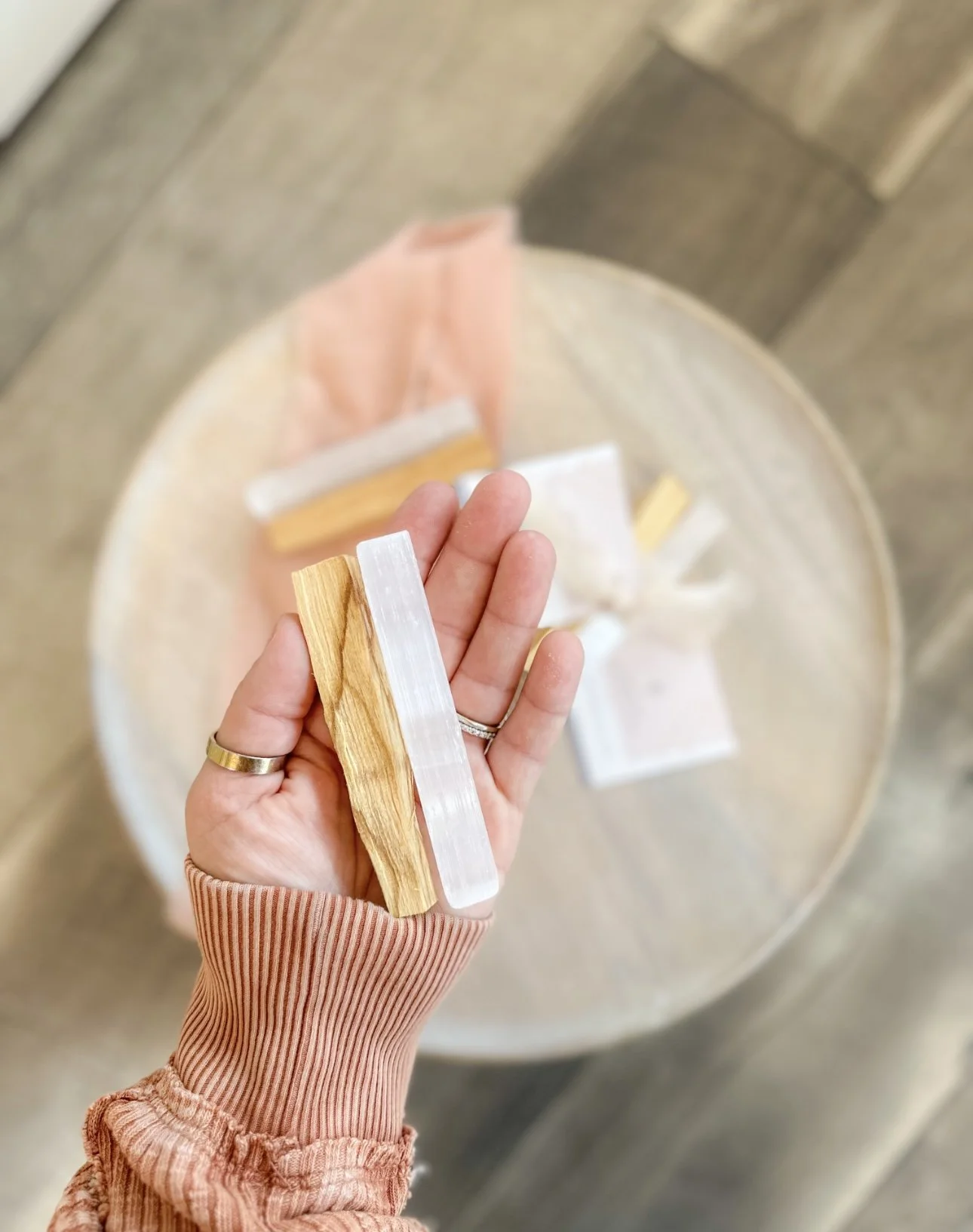 Together, these two tools create the perfect ritual pairing, Palo Santo clears away what no longer serves you, while Selenite restores harmony and channels divine light.